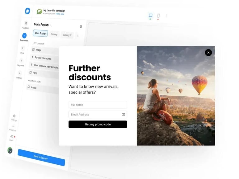 Create stunning popups in seconds with the first AI-powered popup builder! Simply describe your idea, and watch the magic happen - custom designs, smart text, and ready-to-go campaigns tailored to your needs.